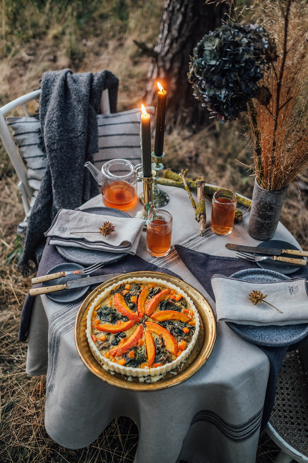 Ihr Lieben! Wir haben diese Fotos schon vor über einem Jahr produziert – für einen schwedischen Kunden von uns – der wunderbare Leinen-Produkte herstellt – Lovely Linen. Und da wir das Rezept so lecker finden und es gerne mit Euch teilen möchten, kommt hier – jetzt passend zur gemütlichen Jahreszeit – das leckeres Kürbis-Quiche-Rezept mit Spinat und Feta für Euch. Quiche ist doch so eine tolle Herbst-und Wintermahlzeit. Sie ist eine warme comforting Stärkung und lässt sich so gut mit anderen teilen. Und wenn man erstmal das Basis-Rezept hat, dann kann man ganz wunderbar und nach Lust und Laune die Gemüse-Zutaten einfach wechseln. Z.B. wer keinen Spinat mag, kann ihn auch sehr gut mit Rosenkohl oder anderem Gemüse ersetzen.